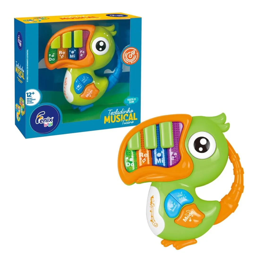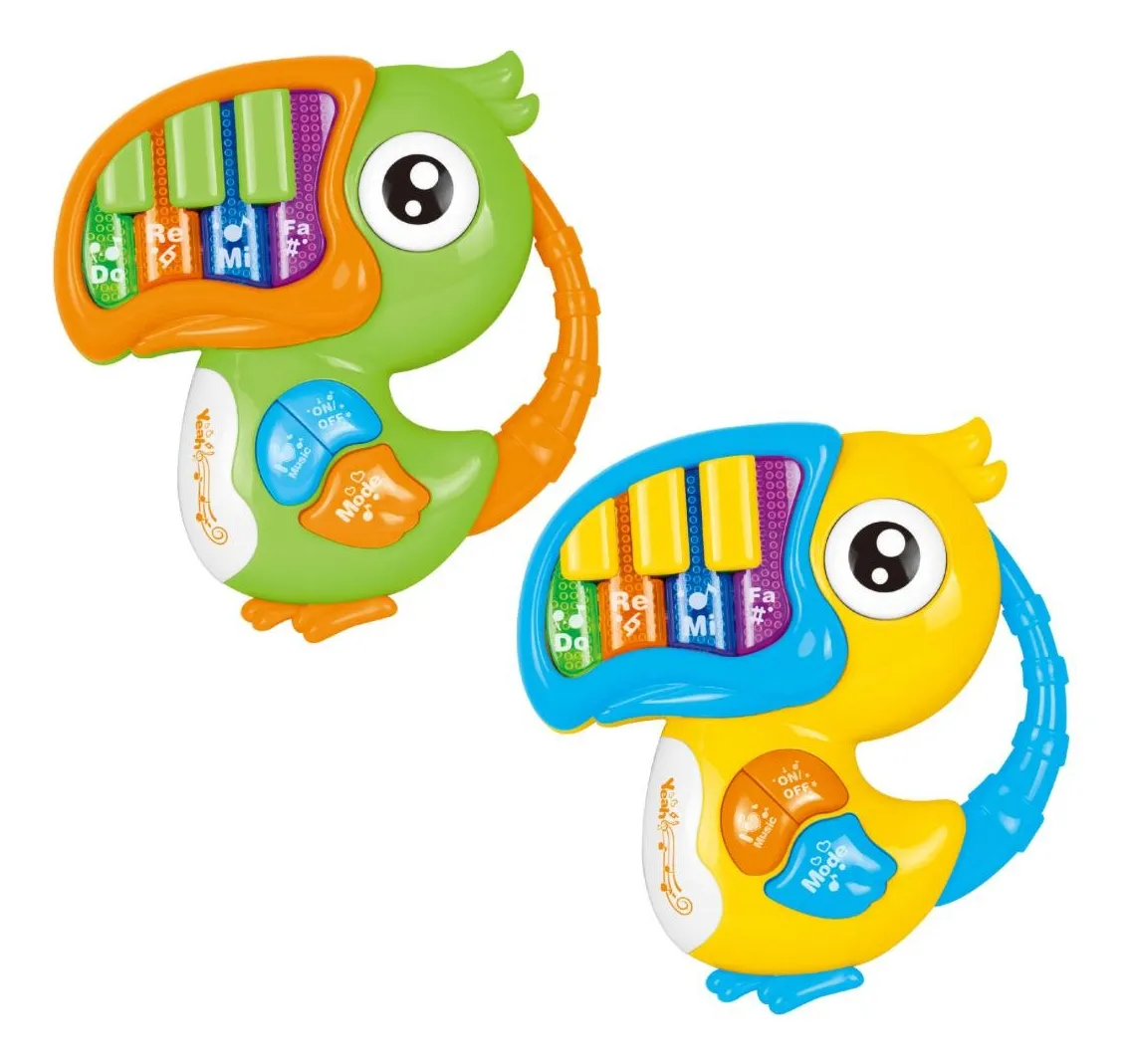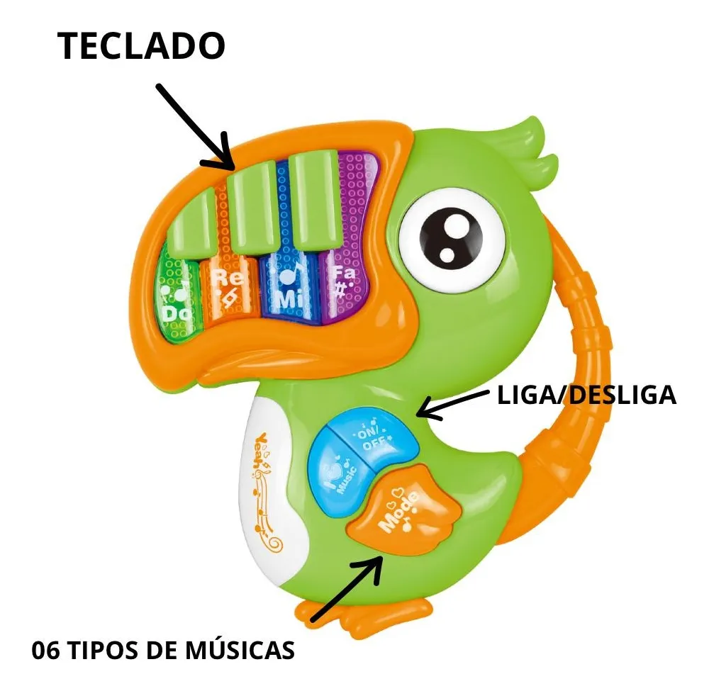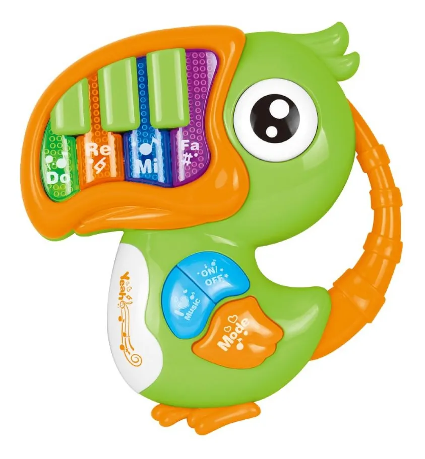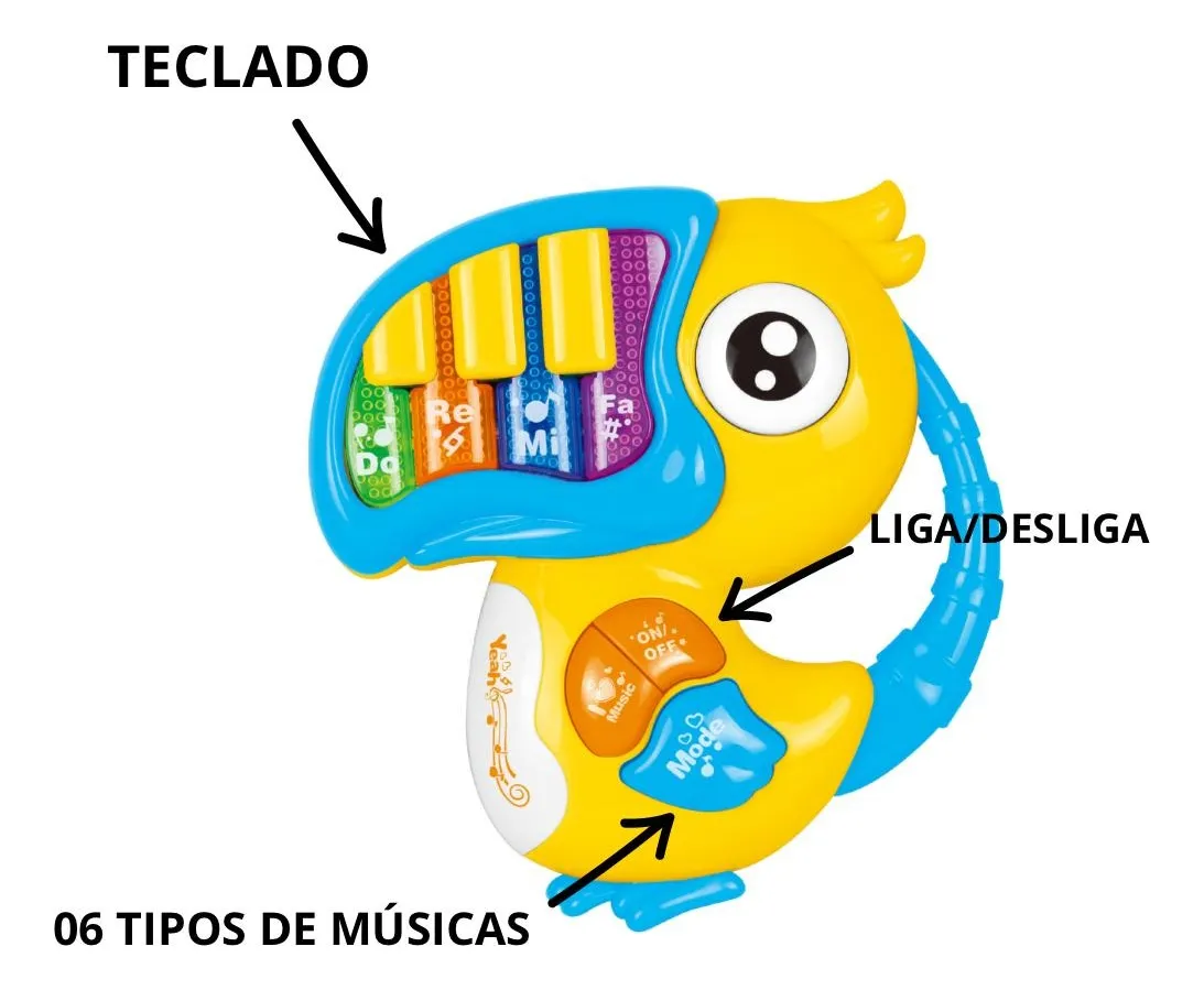 Este teclado em formato de tucano é perfeito para introduzir os pequenos às primeiras notas musicais de maneira divertida e educativa.